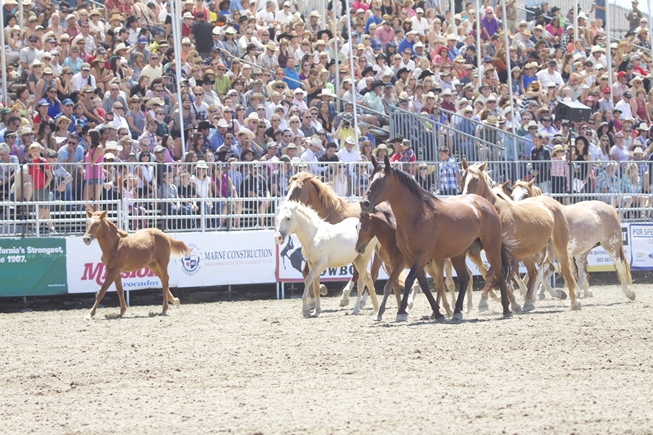 The bucking stock is the heart of a rodeo stock contracting outfit. Flying U Rodeo Co. - one of the oldest continuing stock contracting companies in the world - needs the backup of hundreds of bucking horses and bulls throughout the year-long rodeo season and raises most all of their stock at their ranches in Marysville, CA. A horse or bull may only buck four to six times a month, then will be turned out and another group of stock will go on the road. This means that each animal works an average of only ten minutes a year...what a life!