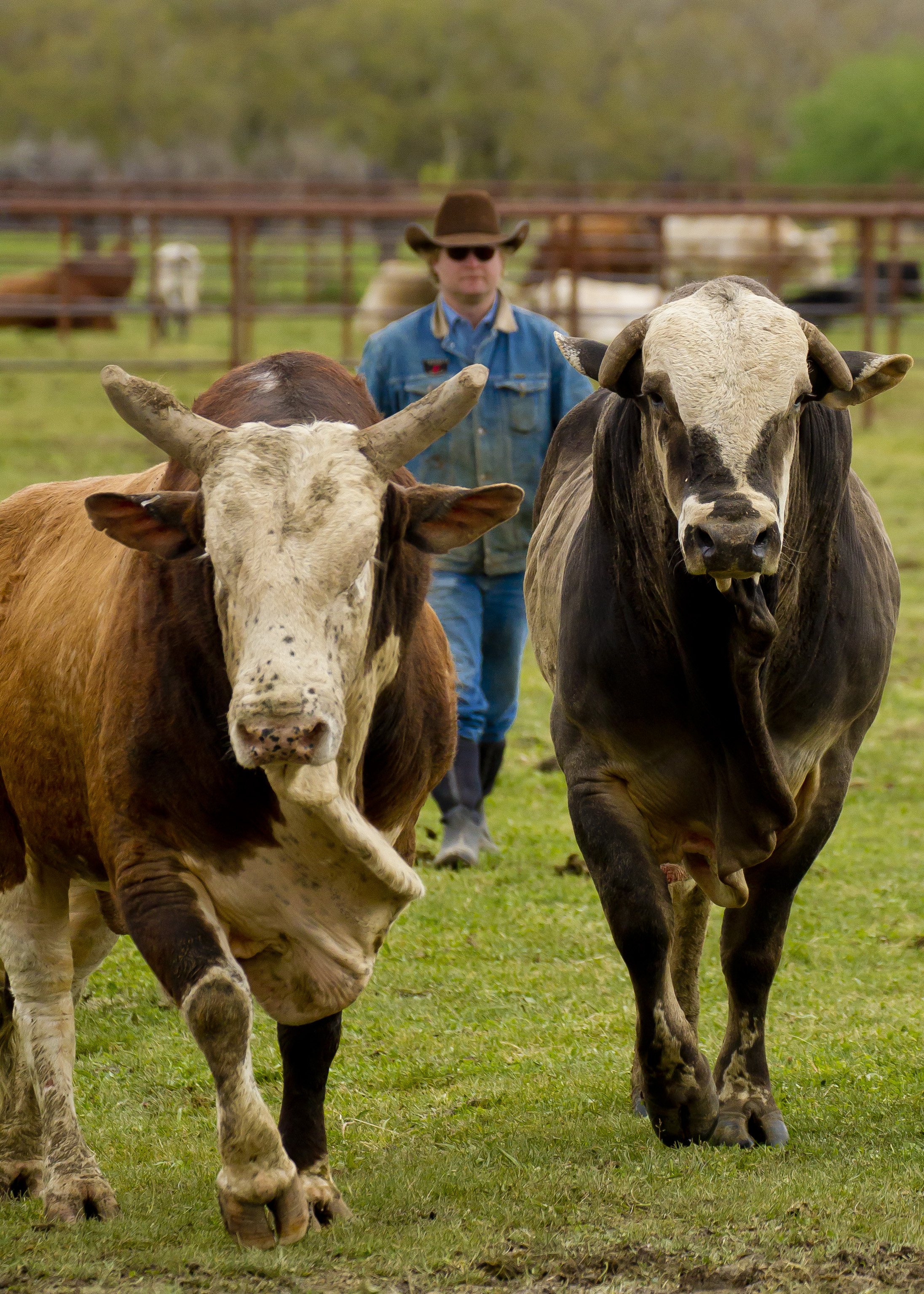 The bucking stock is the heart of a rodeo stock contracting outfit. Flying U Rodeo Co. - one of the oldest continuing stock contracting companies in the world - needs the backup of hundreds of bucking horses and bulls throughout the year-long rodeo season and raises most all of their stock at their ranches in Marysville, CA. A horse or bull may only buck four to six times a month, then will be turned out and another group of stock will go on the road. This means that each animal works an average of only ten minutes a year...what a life!